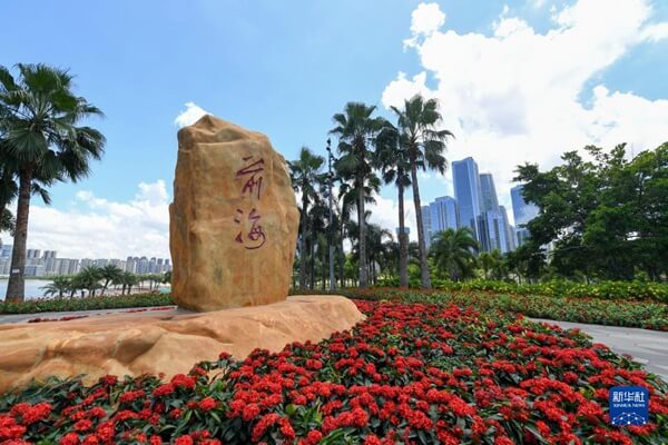 走进绿意盎然的深圳前海石公园,一块宛如“扬帆启航”造型的巨石上,镌刻着“前海”两个大字。