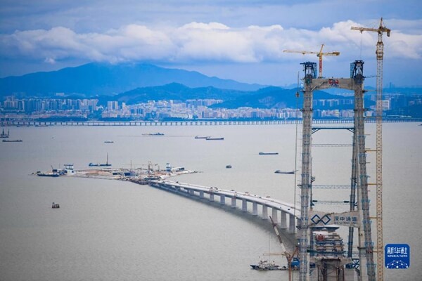 秋日的伶仃洋,粤港澳大湾区核心交通枢纽深中通道岛隧工程施工海域一片热火朝天的景象。这个集“桥、岛、隧、水下互通”于一体的世界级超级工程,将在两年后连通隔海相望的中山市和深圳市,勾连起粤港澳大湾区的生机与活力。