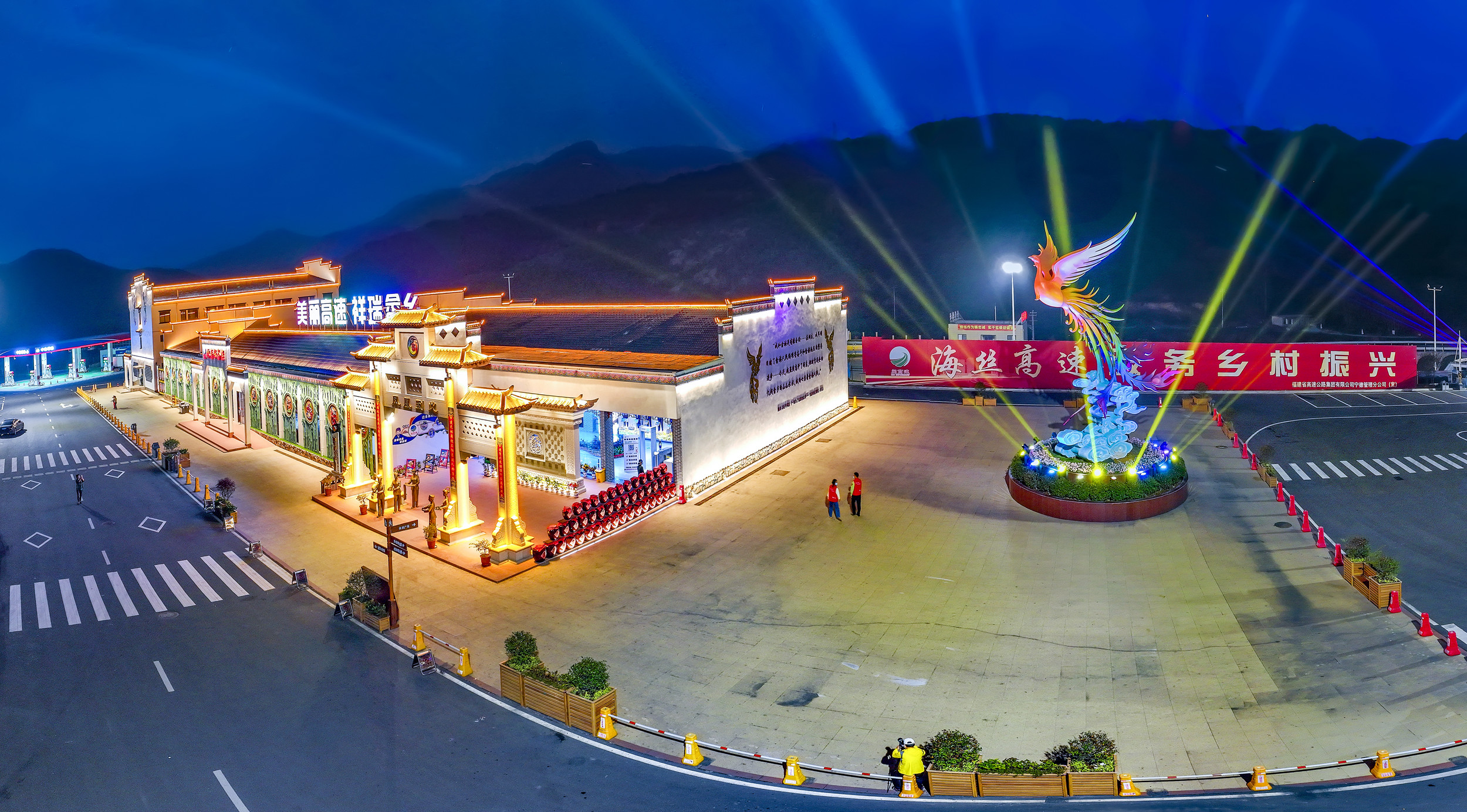 林厝服务区坐落于G1523甬莞高速宁德段K532+000处,于2021年12月31日完成全面提升改造,以“美丽高速、祥瑞畲乡”为主题,深度融合地方畲族文化元素,打造成为全国首个沉浸式畲族风情主题高速服务区。它不仅是一处交通休憩站点,更是一扇展示闽东民族文化、助力乡村振兴的窗口。