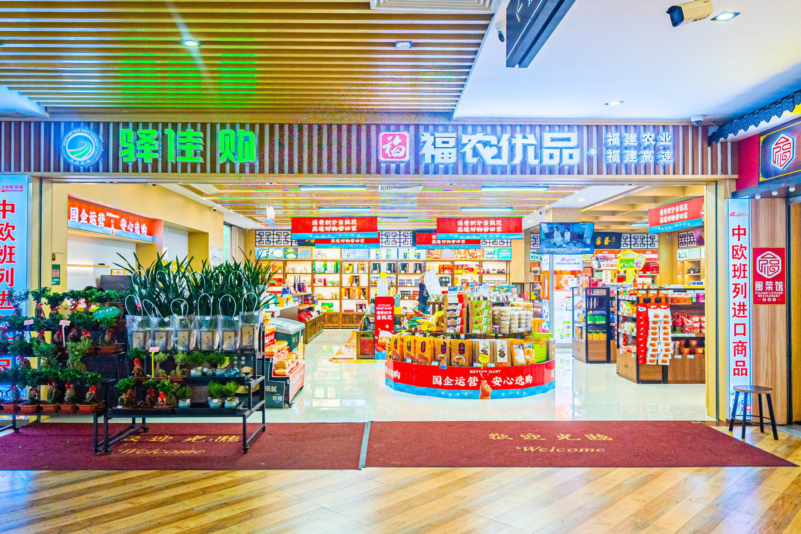 目前,服务区内共设有11家经营档口,涵盖水果专区、驿佳购便利店、文创馆、海丝服饰、莆猫来了等多种业态,从饮食到购物全方位保障出行便利。AB区共规划停车位188个、配备12个充电桩,布局合理,通行便捷。公共服务配备党群服务中心、军人驿站、司机之家、自驾游驿站、卫生间设施齐全,A、B两区均配备独立的男女卫生间及备用厕所,并设第三卫生间、母婴室、急救药箱、修车工具箱等多项服务,从细处着手逐步完善人性化服务功能,真正做到让利便民,进一步擦亮高速公路服务窗口形象。