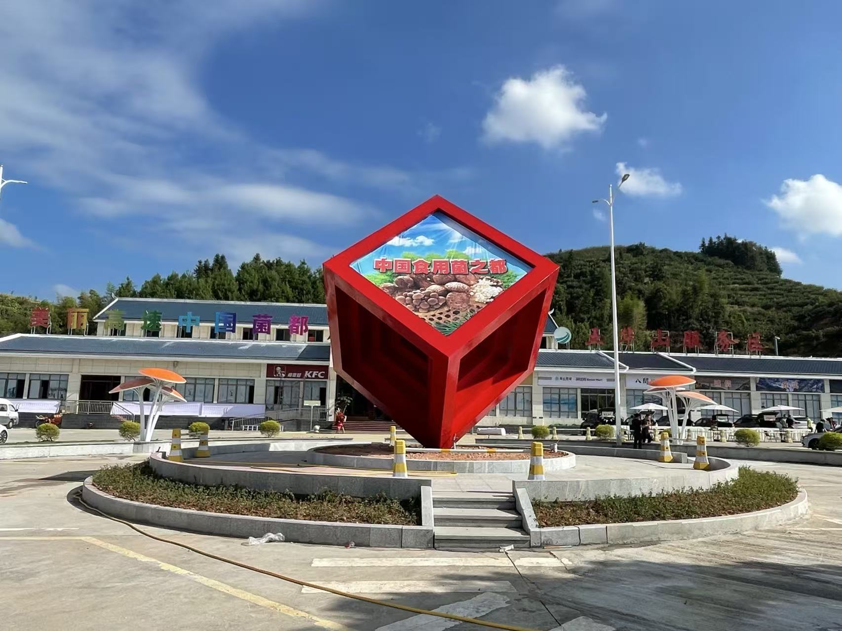 步入服务区,浓厚的“菌都文化”氛围扑面而来。从入口处的“菌都文化主题”景观小品,到专为儿童打造的趣味“菌菇乐园”,服务区将古田县的特色产业符号巧妙融入公共空间的每个角落。综合楼内部更是视觉与科技体验的焦点——通过360度全息多媒体技术,生动逼真地呈现出各类食用菌从孢子萌发到子实体成长的完整3D影像过程,让过往旅客仿佛置身于神奇的菌菇世界,不仅开阔眼界,也更直观地理解了“中国菌都”的品牌内涵。