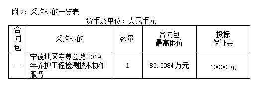 一、宁德地区专养公路 2019 年养护工程检测需要协作服务。现拟采用公开询价方式采购协作单位。