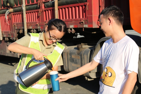 泉南闽赣中心所党支部将党员示范引领作用延伸到一线收费窗口,组织党员志愿者在征费区开展真诚服务司乘活动,为过往司机朋友倒上一杯热水,让旅途多了一份温情。(三明公司)