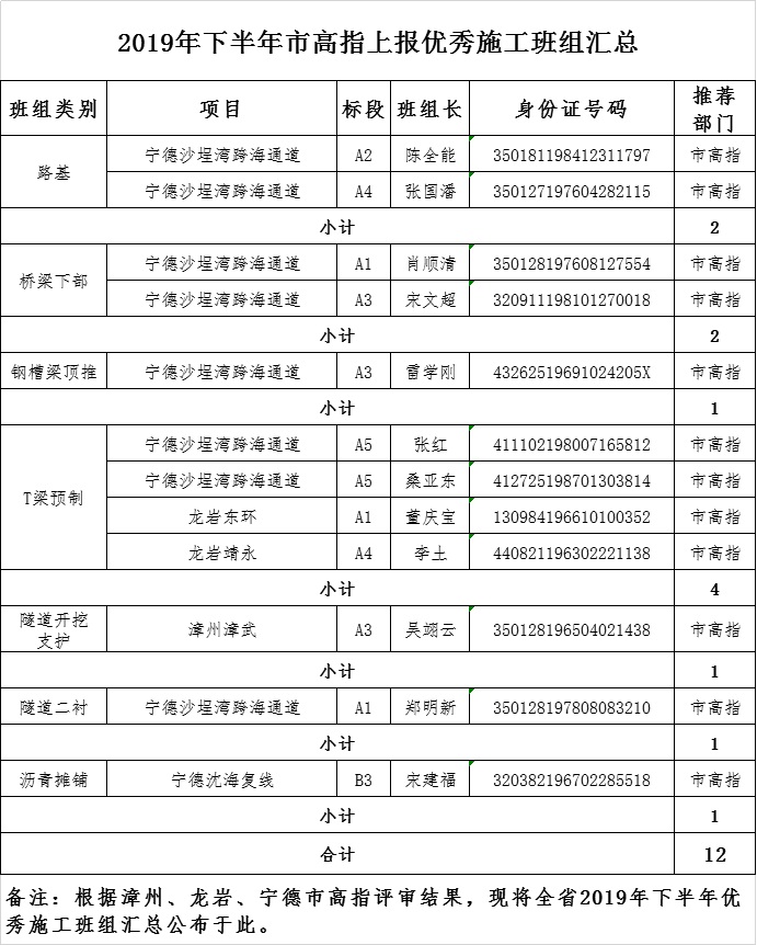 2019年下半年市高指上报优秀施工班组汇总 文章来源: 发布时间: 2020-03-09 09:17 星期一 阅读次数: 138662019年下半年市高指上报优秀施工班组汇总:上一篇: 2019年上半年市高指上报优秀施工班组汇总下一篇: 2020年上半年市高指上报优秀施工班组汇总