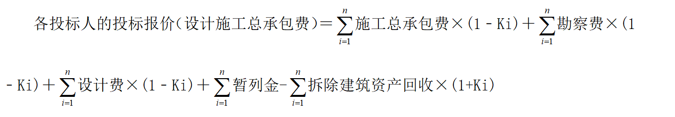 ⑤拆除建筑资产回收:196543元。投标报价为:最高投标限价×(1+K2值)