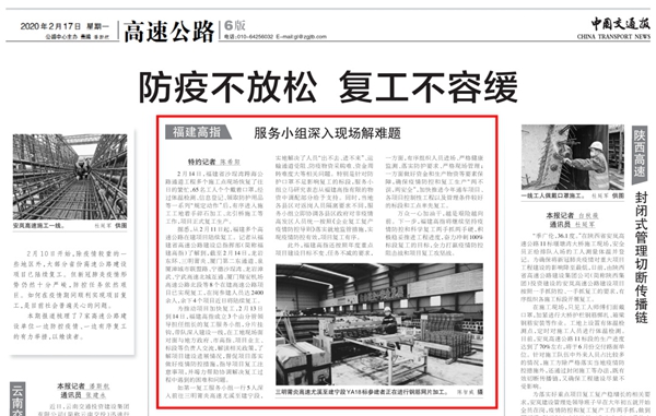 多家媒体报道我省高速公路防疫、复工及保畅通等工作 文章来源: 发布时间: 2020-02-18 19:29 星期二 阅读次数: 3061多家媒体报道我省高速公路防疫、复工及保畅通等工作:福建卫视新闻|福建:高速公路在建项目力争100%标段复工中国交通报|福建高指:服务小组深入现场解难题上一篇: 多家媒体报道我省高速公路防疫、复工及保畅通等工作下一篇: 多家媒体报道我省高速公路防疫、复工及保畅通等工作