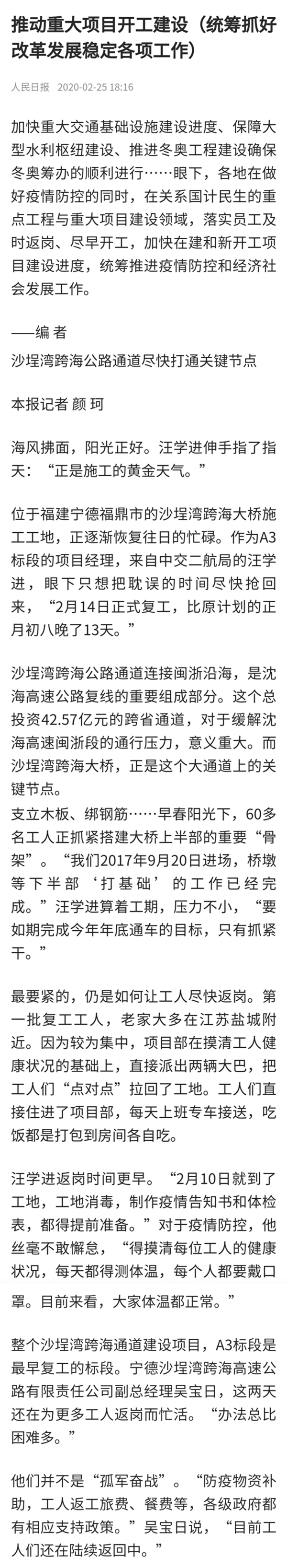 人民日报|沙埕湾跨海公路通道尽快打通关键节点