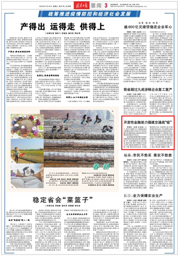 福建日报|开发性金融助力福建交通战“疫”