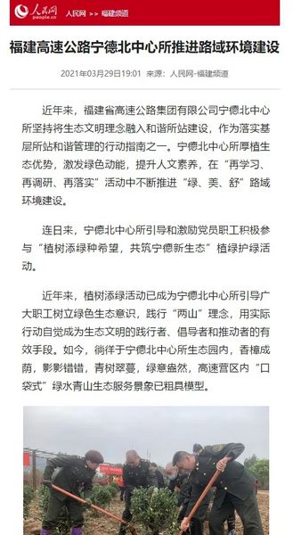 人民网:福建高速公路宁德北中心所推进路域环境建设