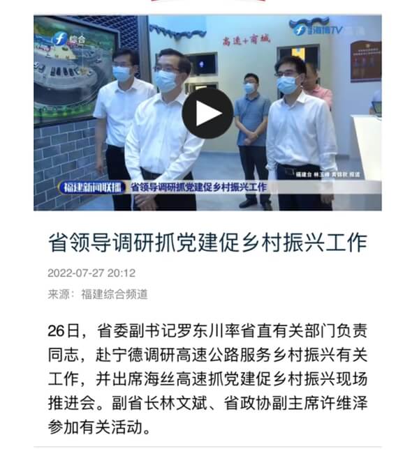 近日,央视福建、福建日报、福建电视台等央媒省媒,聚焦我省高速公路抓党建促乡村振兴工作进行全方位、多角度报道,营造了良好氛围。