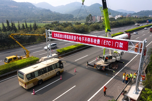今日,我省首个非省界电子不停车收费(ETC)门架顺利吊装